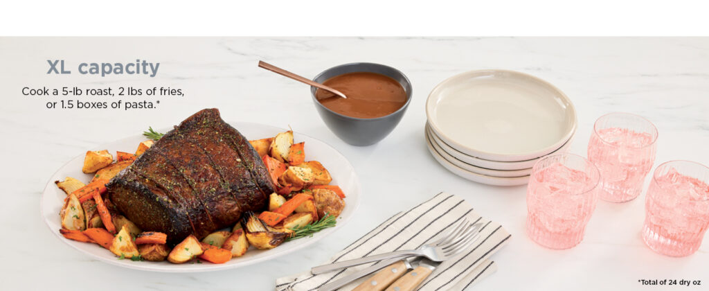 What truly amazed me was the dual-layer Combi Pan cooking system. You can cook protein on the top tray and sides or pasta on the bottom, both at the same time. In one test, I made seasoned chicken breasts and creamy vegetable pasta in under 30 minutes—juicy, tender, and cooked evenly.